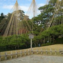 11月中旬に行きましたが、すでにほとんどの木に雪吊りの準備がされていました。