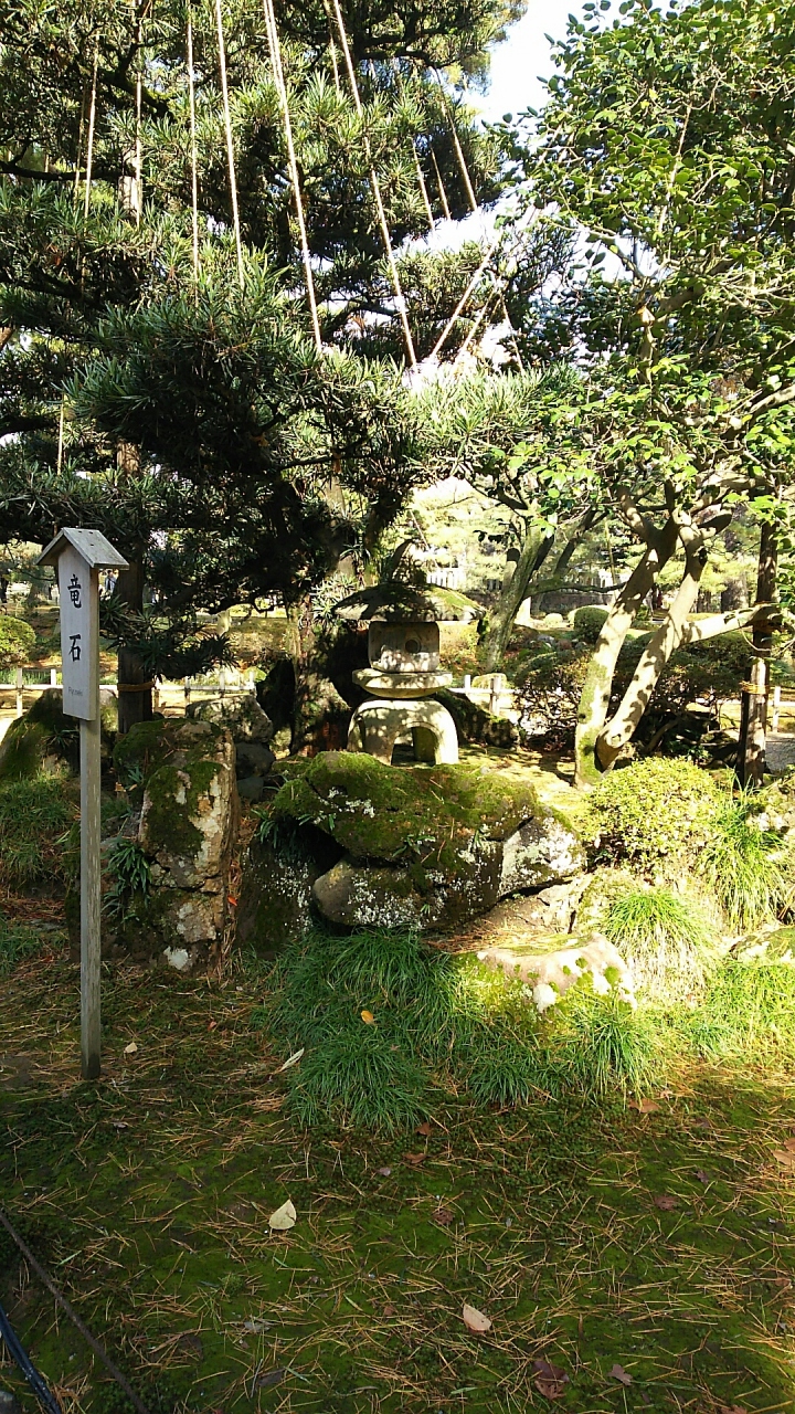ついつい灯籠の方に目がいってしまいますが、灯籠の下の部分の石(自然石)が角度によって竜の姿に見えることからこの名前がついているようです。