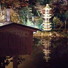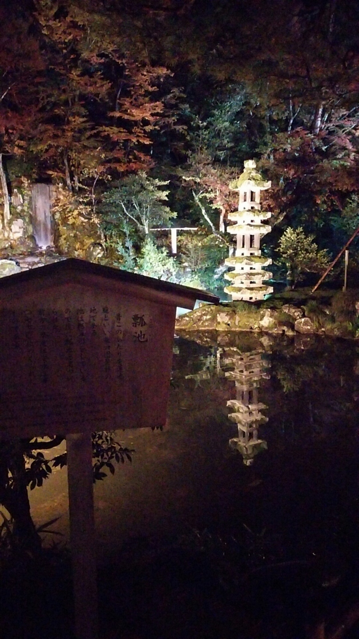 紅葉のライトアップの時にうかがったのですが、小さな滝と灯籠、ライトアップされた紅葉と銀杏が、とても幻想的で素敵でした。