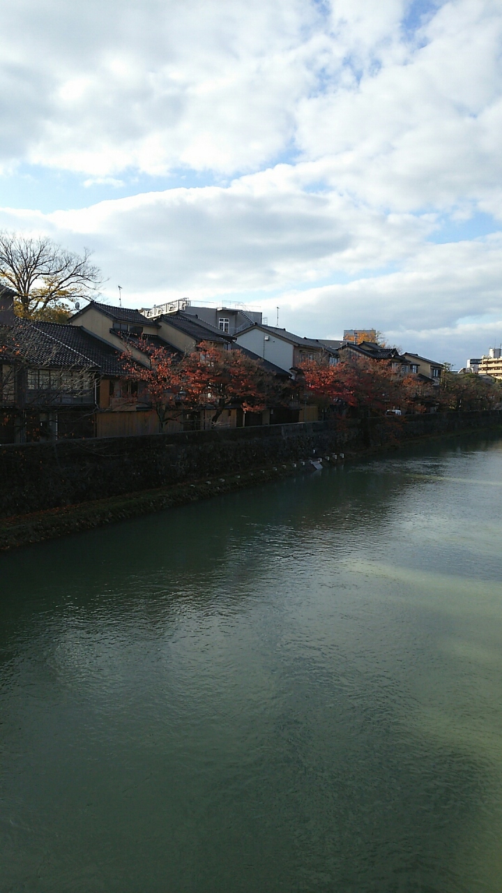 茶屋街や川辺にある木々の紅葉とマッチして、橋の上からみる浅野川はとても素敵でした。泉鏡花の作品にもたびたび登場するようです。