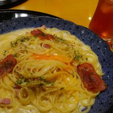 窓から飛行機の離着陸を見ながら、パスタがのんびりいただけます。