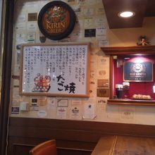 ソース、だし、ネギマヨの三種類のたこ焼きと飲み物(アルコールあり)がメインのお店です。