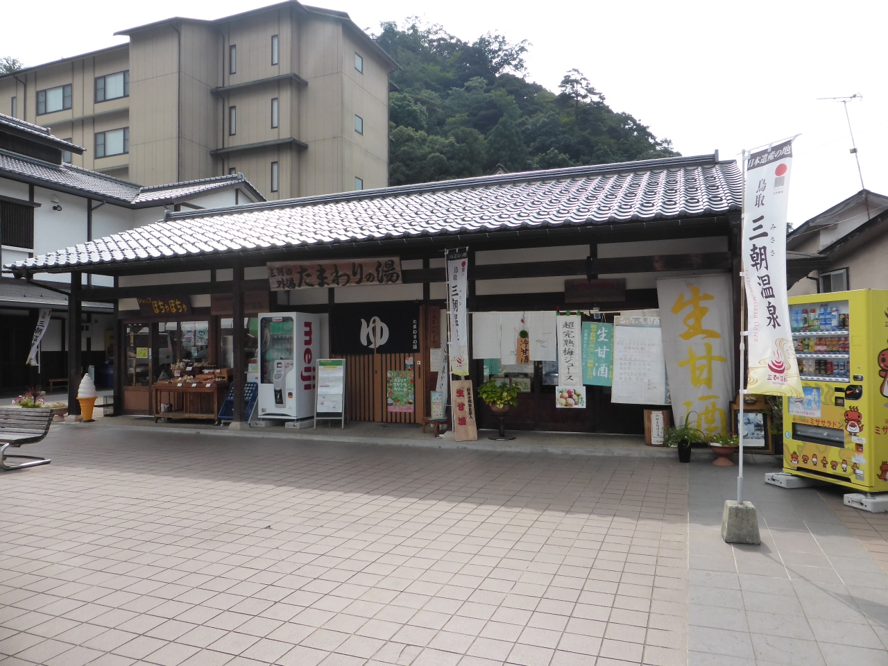 三朝温泉で日帰り入浴しようと考えると、宿以外だと3つ。ただ株湯は温泉街から遠く、河原の湯はちょっと勇気がいると考えると、三朝橋のたもとにありアクセスもいいこのたまわりの湯という事になります。ただ注意しなくていけないのは、前の駐車場に停められるのは数台のみ。滞在中に何回かこの前を通りましたがいつも満車でした。三朝温泉は基本的に有料の駐車場しかないので、車で訪問の際は要注意です。