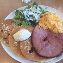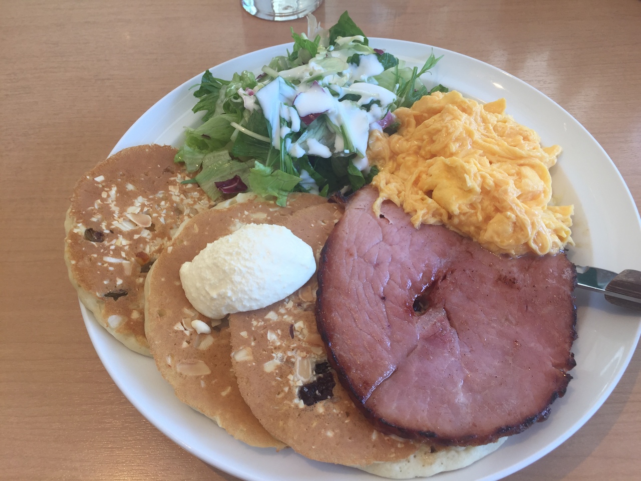 割とスグ運ばれてきたパンケーキが暖かくなかったのはガッカリ。