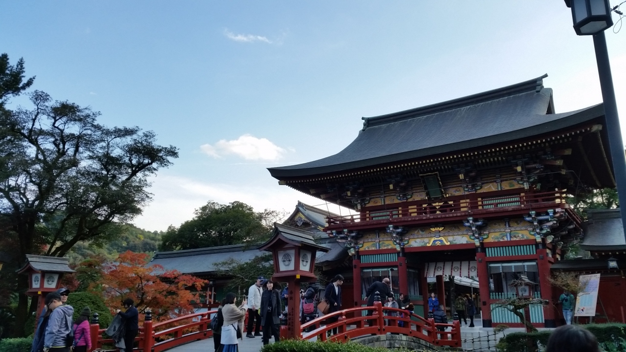 日帰りバスツアーで訪問しました。日本3代稲荷の一つです。朱塗りの柱と金色の模様がが美しいです。階段をかなり上りますが、前回にはなかったエレベーターが設置されており、300円で上れるので、お年寄りには優しいと思います。上から見下ろす紅葉も美しいです。200円で日本庭園にも入りましたが、藤のころと違い落葉している木が多く、残念でした。