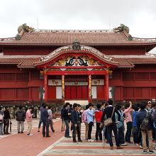 朱色の正殿に石垣の城壁がとても迫力があります。