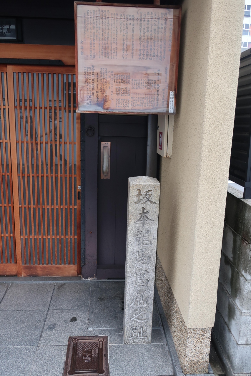 河原町三条の一本下った通りを東に入った所に酢屋があります。昔の佇まいを残す元材木店の酢屋は坂本龍馬の隠れ家として知られる場所です。坂本龍馬が暗殺された近江屋の方が有名ですが、土佐藩邸の北側にあったこの酢屋には海援隊の本部が置かれ、龍馬はこの酢屋の2階で寝泊まりしていたそうです。龍馬ファンが良く訪れる場所の一つです。