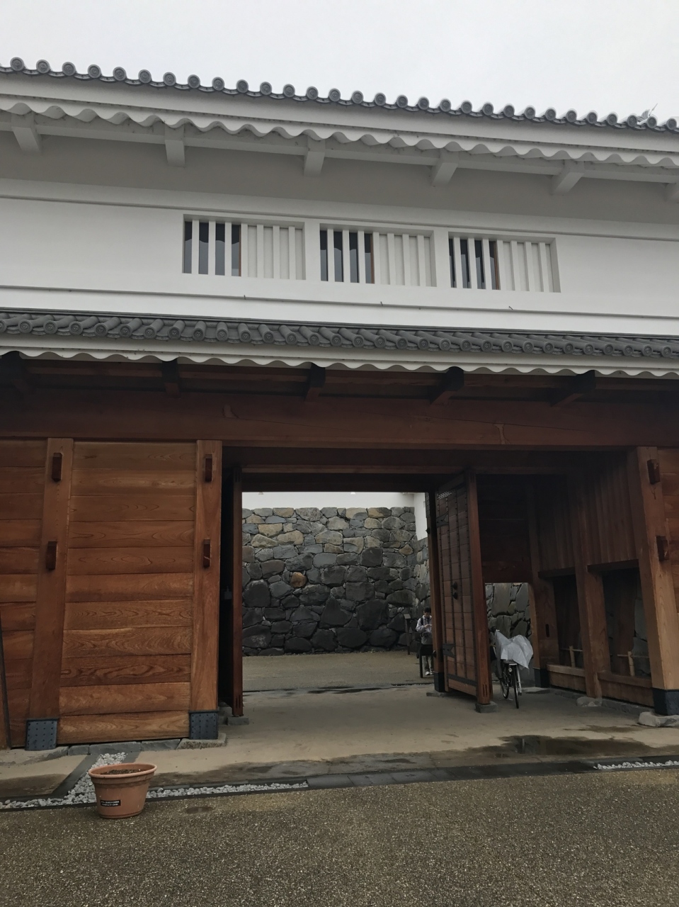 甲府城の山手門は、楽只堂年ろく絵図には、石垣を渡しかけているように描かれており、一層目の門の上にやぐらがのるやぐら門形式の門としております。一層目は石垣の門に門扉、けやき材の鏡柱、添え柱が配置して75センチもの大きな大領等を支えています。