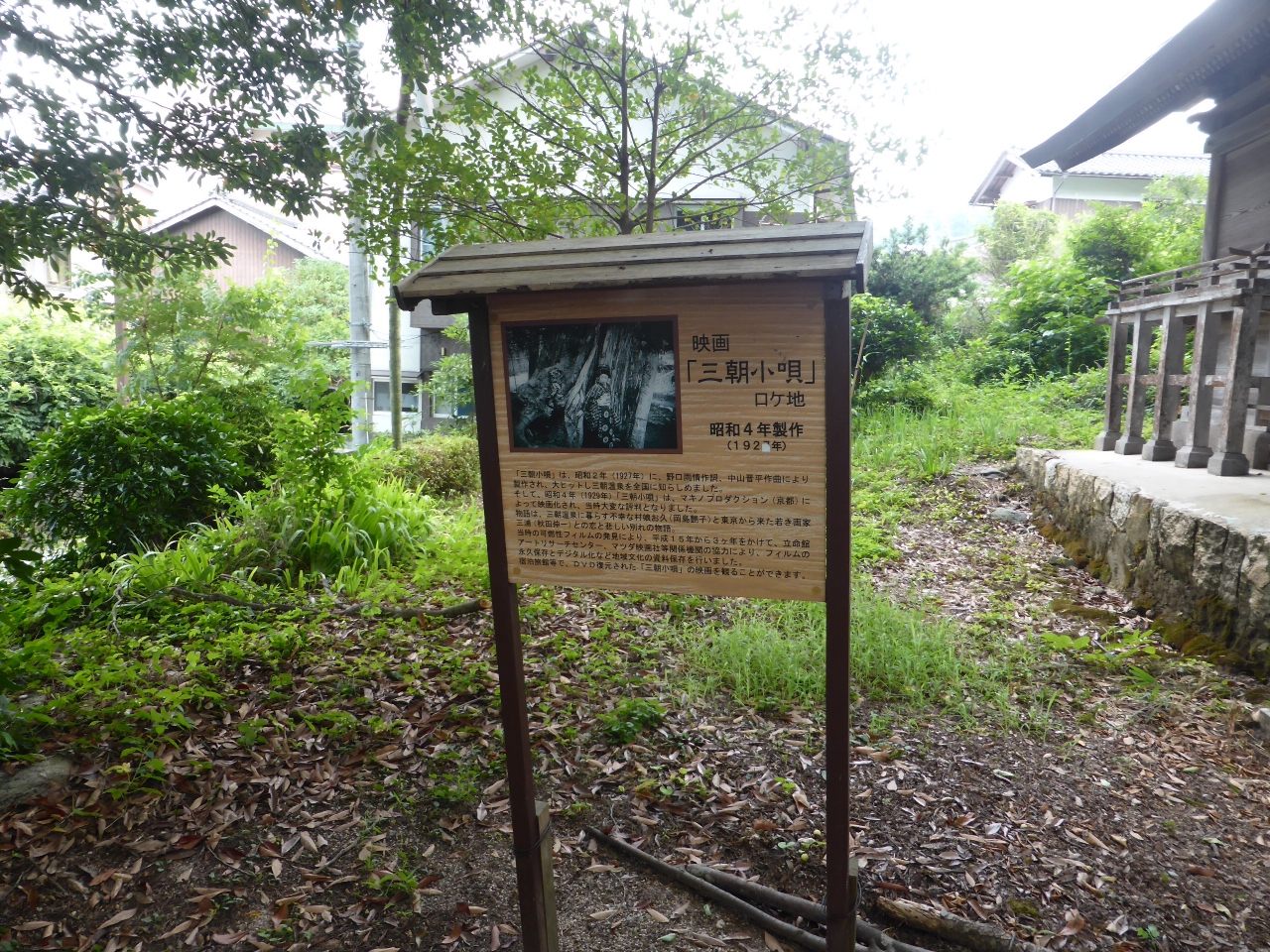 三朝の温泉街からは少し外れた場所にあります。さすが三朝と言うべきなのか、手水所には温泉が使われています。神社としてはこじんまりしていますが、境内にある大きな2本の木が印象的。80年前の映画「三朝小唄」や最近では「恋谷橋」のロケとしても使われています。