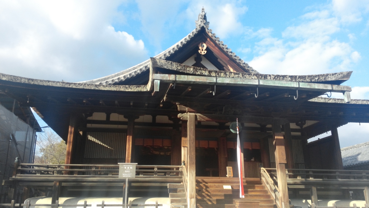 鎌倉時代に改造した、国宝級の仏像を置かれます。靴を抜いて自由に入れます。階段と主な建築の支柱なども木材の感覚が強いです。入り口で中に御朱印をいただけの板で示られます。鐘楼、中門、東室などでに囲まれています。