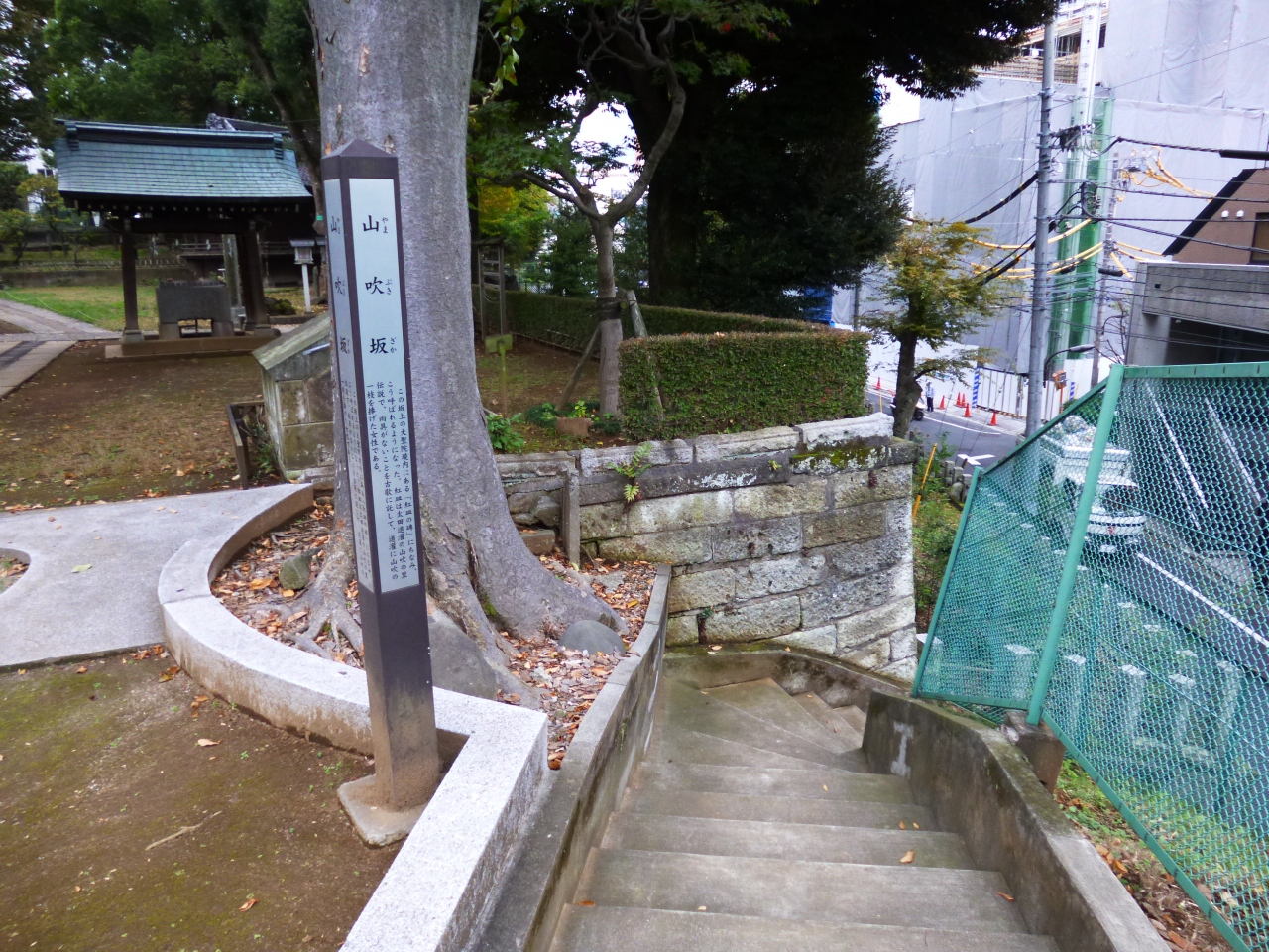 新宿6丁目にある急階段に「山吹坂」という標柱が建っています。
