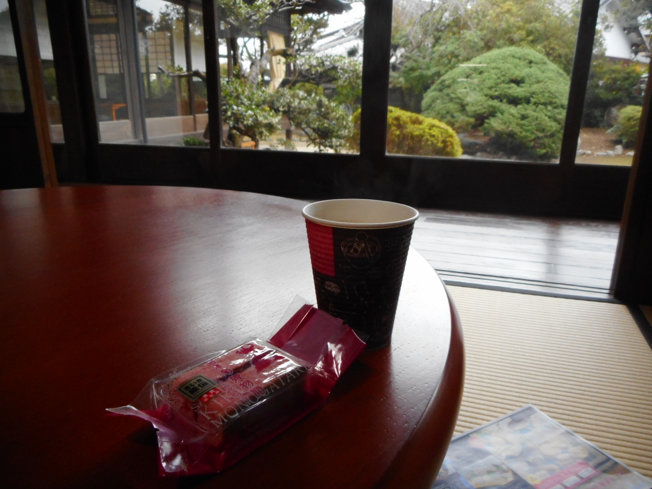 コーヒーが100円、地元の洋菓子佐伯藩菊姫物語が160円でいただけます。庭園を眺めながら和室で、またはレトロなソファーの洋室でいただくのは格別です。