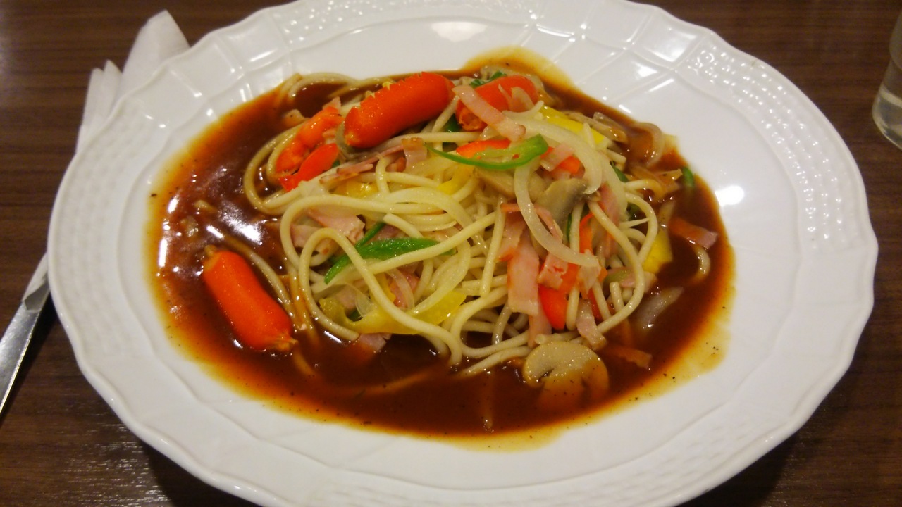 名古屋駅の新幹線側にある地下街で食べるところを探しましたが、あんかけパスタが美味しそうだったので入りました。初めて食べたあんかけパスタは、ナポリタンのような感じでしたが、甘辛いソースが麺に絡んでなかなか美味しかったです。喫茶店なので、ケーキやスウィーツ類が充実していました。