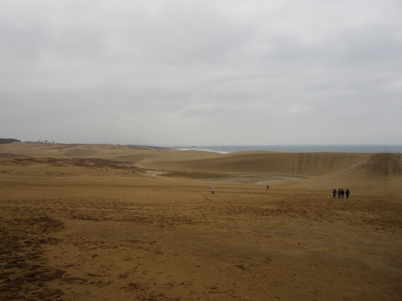 鳥取駅で雨だったので、少し躊躇しましたがバスで砂丘へ向かいました。それなりに観光客がいました。雨で砂が濡れていたので、靴が砂に埋まることなく歩きやすかったのですが、やはり天気の良い日に美しい風紋を見たいと思いました。
