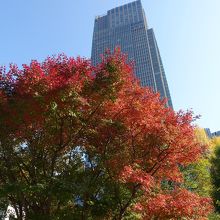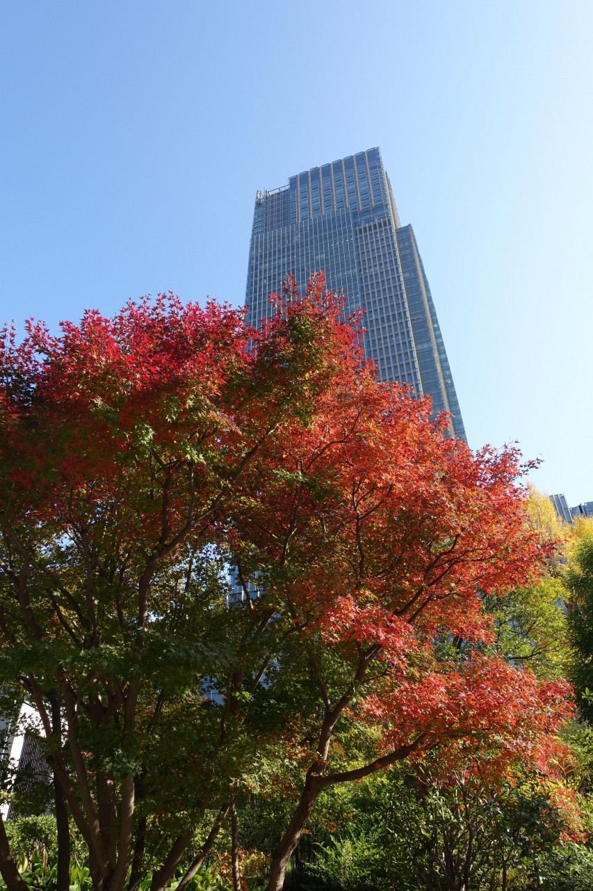 秋は昼も夜も東京ミッドタウンが美しい季節です。今回はランチの帰りに立ち寄りましたが、澄み切った青空を背景に、東京ミッドタウンの高層ビルが聳え、さらに真っ赤な紅葉が華を添えていました。