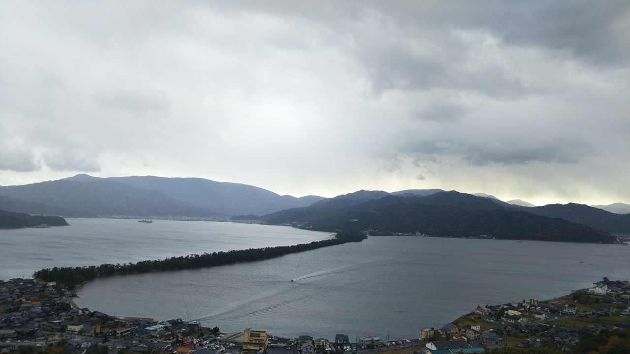天橋立の光景を綺麗に見ることが出来ます。あまり大きくない展望台では、多くの人が若干ためらいながら股のぞきををしていました。結構、不安定な足場なので、ここでこのポーズをするのはちょっと怖そうです。すぐ近くにお土産物屋さんや展望レストランがありましたが、それ以外には何もない感じです。