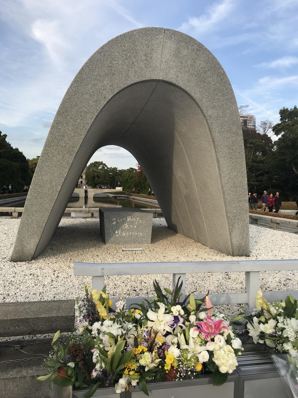 繰り返しません、というメッセージが刻まれていて、多くの人が集まっていました。原爆ドーム、爆心地と全て歩いてすぐの距離です。国内外から多くの観光客が来ていました。周囲の木々は、秋は紅葉が見事で、それがなんとも言えなかったです。