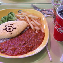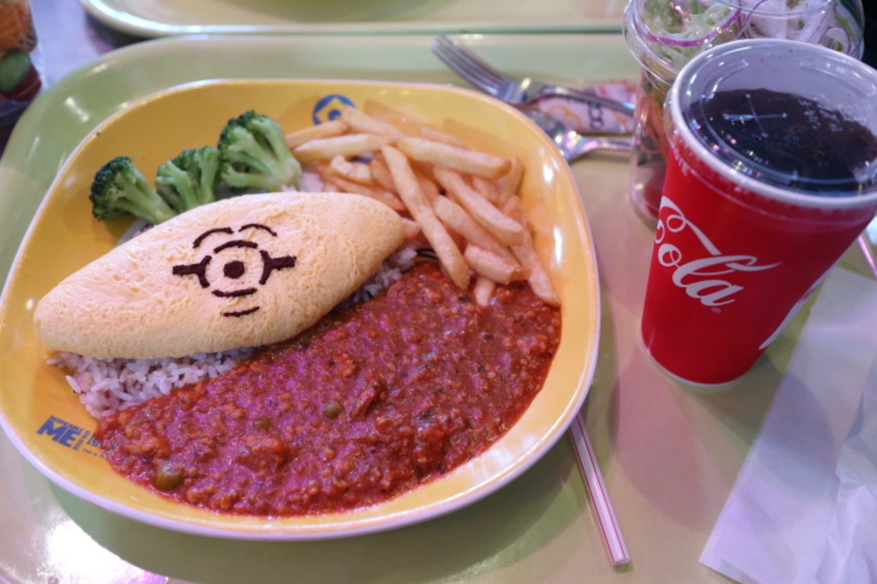 人もたくさん並んでいましたが、席も多いのか、思ったよりも待ち時間は短かったです。私はカレーを。友人はハンバーガーを選びましたが、どちらもミニオンがデザインされていて、かわいかったです。