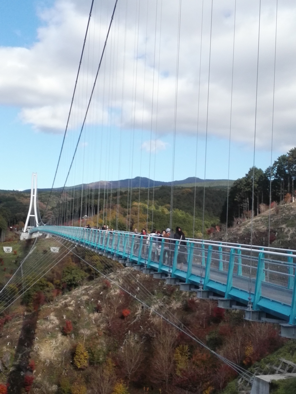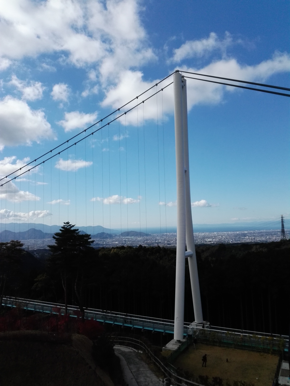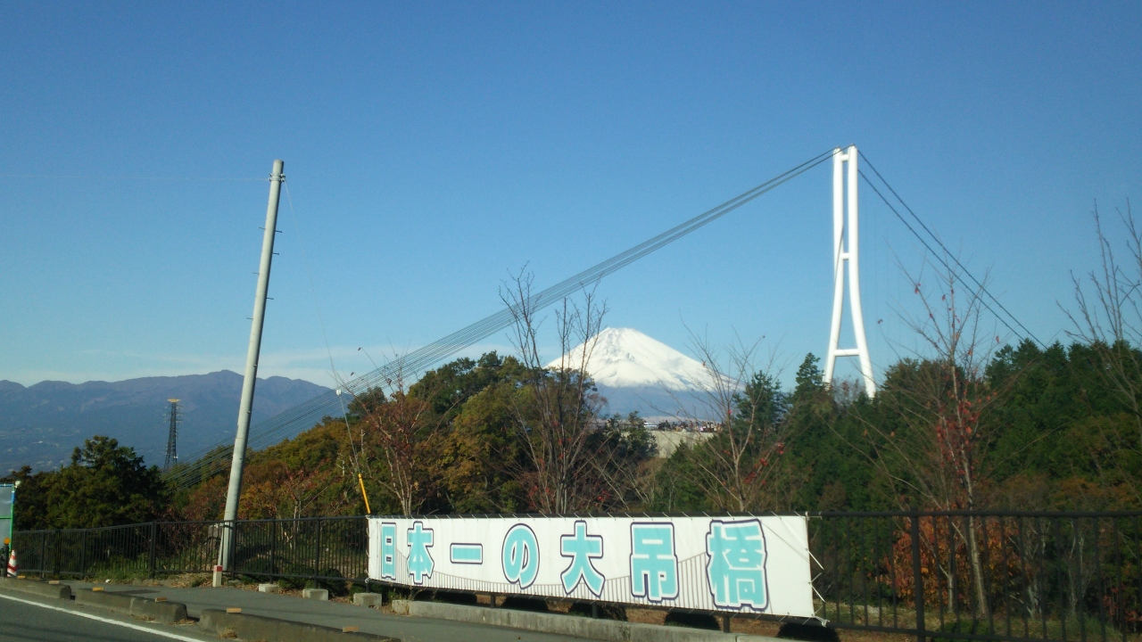快晴のなか、三島スカイウォークに行ってきました。日本一の大つり橋というだけあって高所恐怖症の私は対岸に渡るまでドキドキの連続でしたが、橋から眺める富士山と駿河湾は見ごたえあるものでした。この日は、若干雲がかかっていた富士山ですが雪をかぶった見事な姿を見せてくれました。