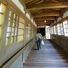 渡り廊下や階段は毎日、僧が磨いているので、木造ながら