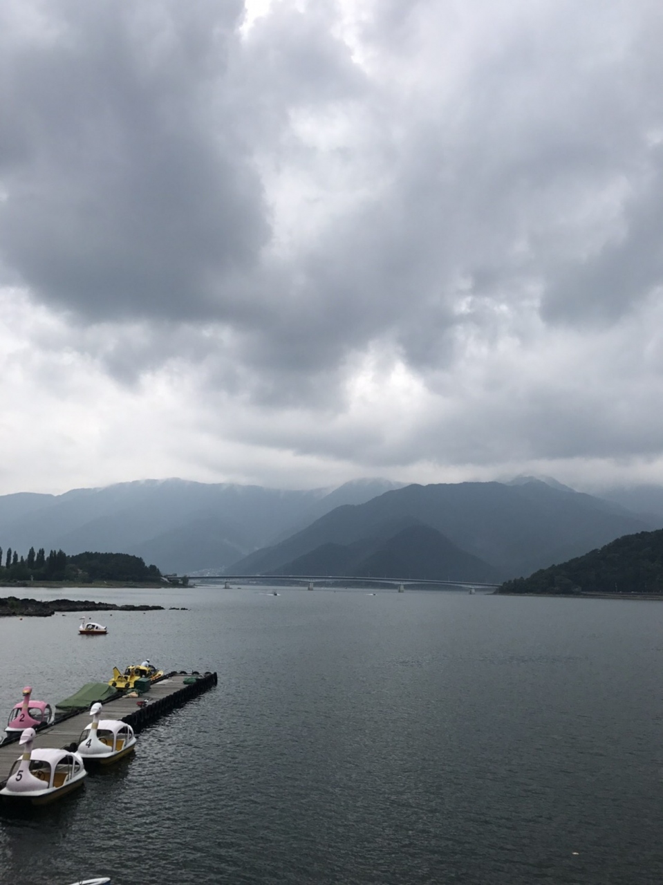 お天気があいにくの曇り空で、富士山をのぞむことが出来ず残念でしたが、湖を囲むように山々が連なり、その緑の山に少し雲がかかってかすんで見えるのもまた風情があってよいと思いました。