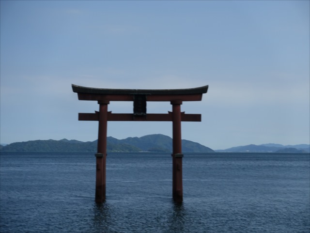 びわ湖の中に大鳥居があります。さすがに近くまでしか