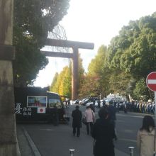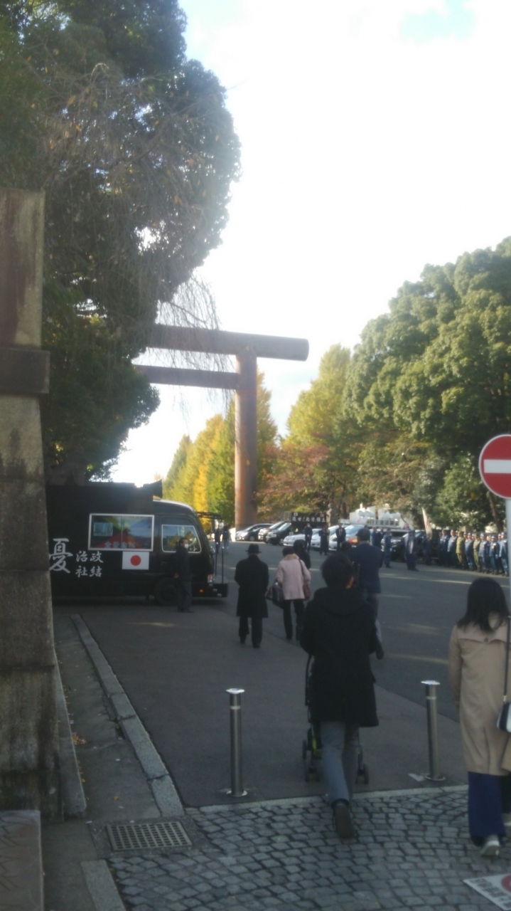 11月の休日、かみさんと地下鉄の九段下駅を降りて周辺を散策しました。九段坂を昇り、左手に見えるのが日本武道館、 右手に見えるのが靖国神社です。とてもすばらしい神社で、普段家の近くの氏神さまにお参りに行くのとは勝手が違います
