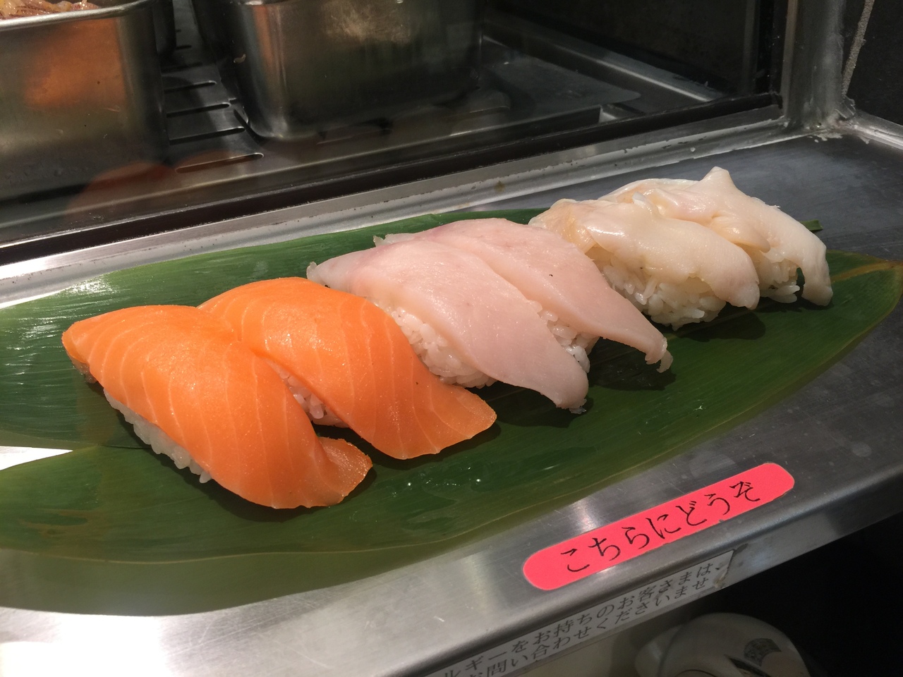 食べたのはビンチョウマグロ、サーモン、ツブ貝、あなご、かにみそをそれぞれ2貫ずつの計10貫!