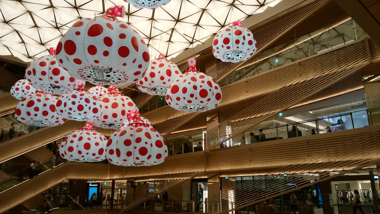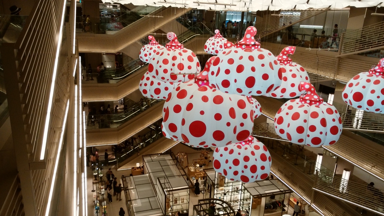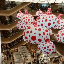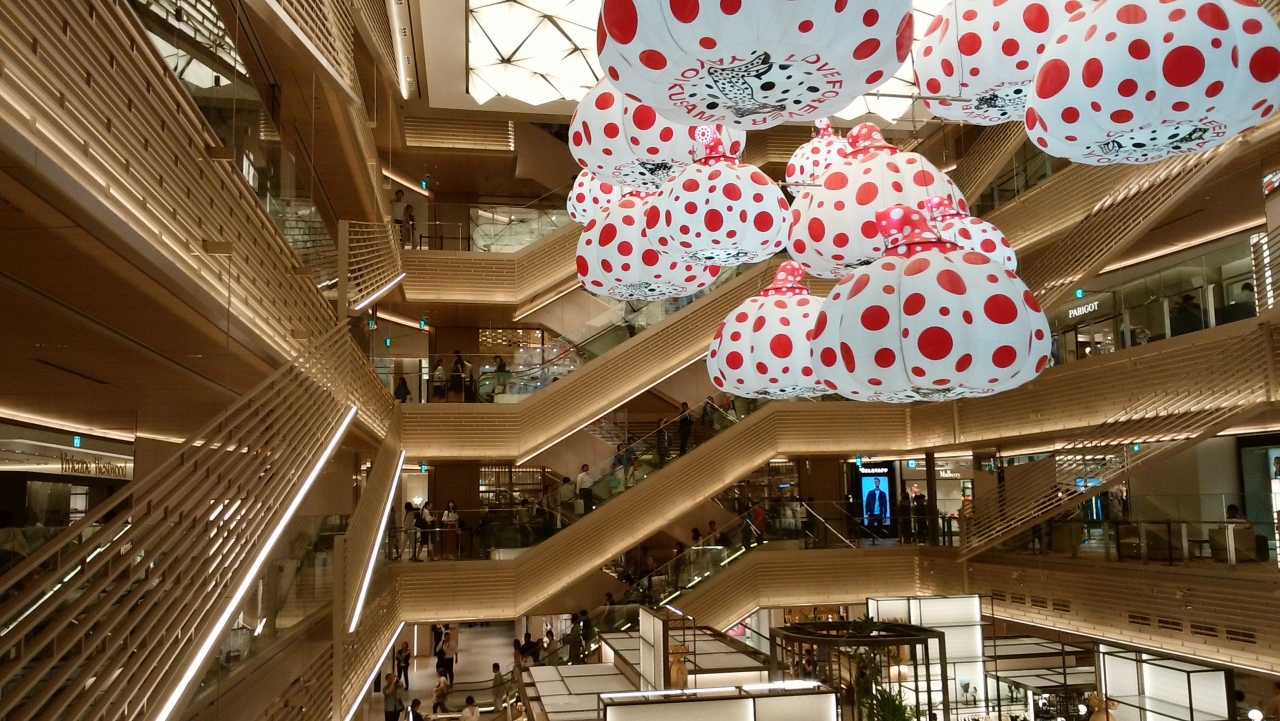 元松坂屋デパート跡地に2017年4月20日開業した「GINZA SIX」は、241のブランドが 集結しています。エスカレーターを上がると吹き抜けの店内と風船のオブジェがきれいです。流行最先端のショッピングモールと思いきや地下3階には「観世能楽堂」があり、意表を突いたように文化施設もあります。