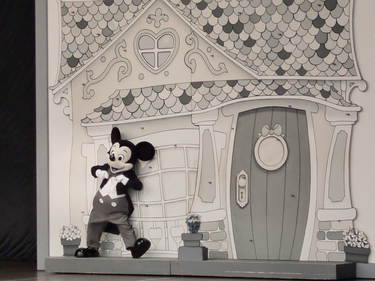 白黒のミッキーミニーが登場するところから始まり、ディズニーの映画のテーマソングにあわせてキャラクターたちが踊ります!
