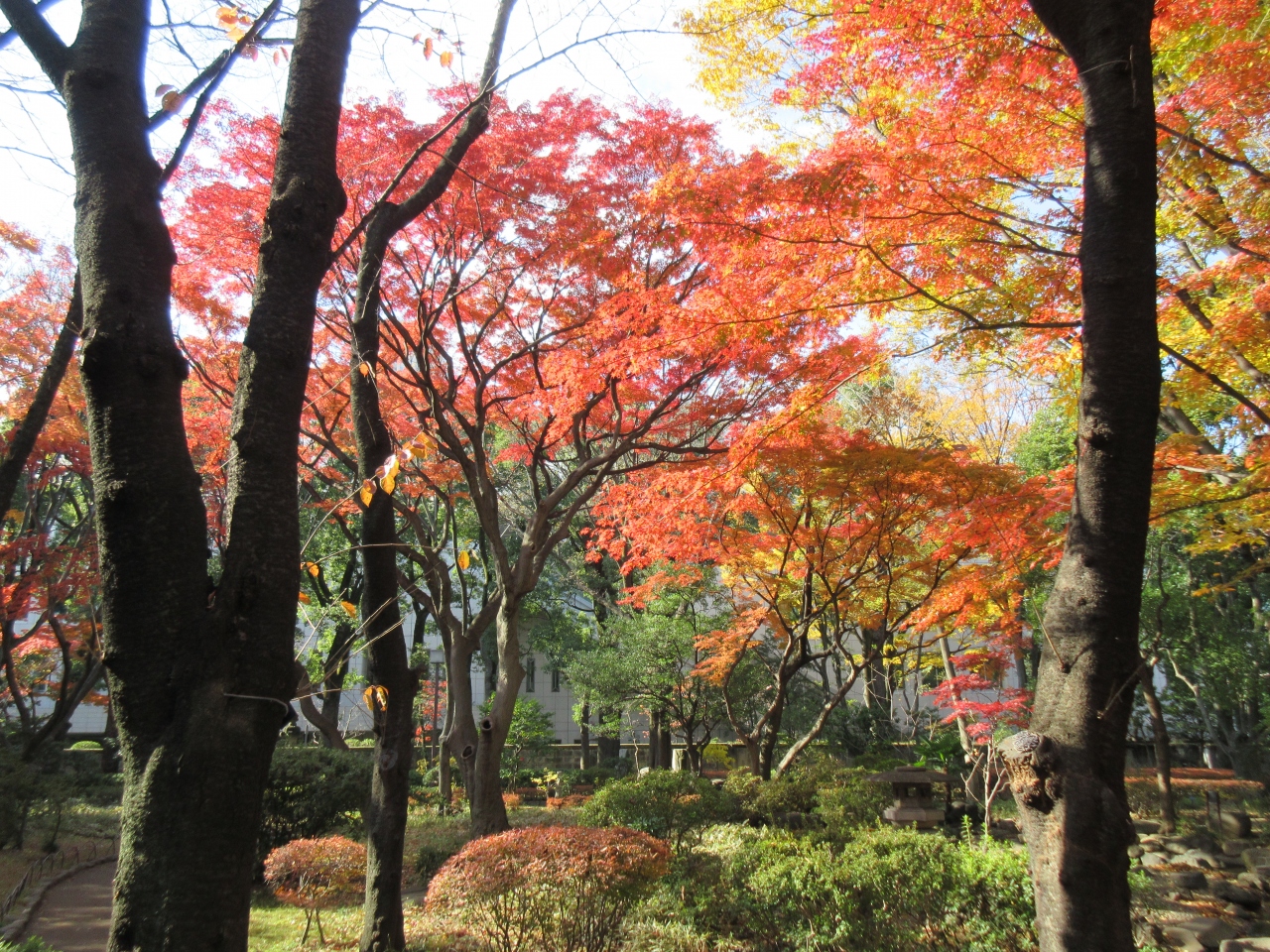 青山通りを挟んで赤坂御用地の向かいにある緑豊かな公園です。すぐ近くにある伝統工芸店・青山スクエアを訪れた際に立ち寄りました。赤坂御用地の紅葉はあまりきれいではありませんでしたが、ここのもみじは光に照らされとても美しく赤や黄色に色を変えていました。小川も流れ、ベンチも設置されているので、近くを訪れた際に寄ってみてはいかがですか。歩いて10分ほど所には神宮外苑イチョウ並木もあり、美しいイチョウの変化を楽しむことができます。