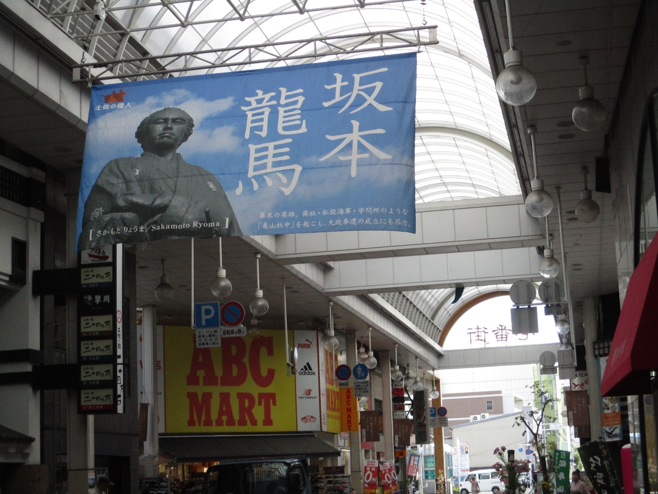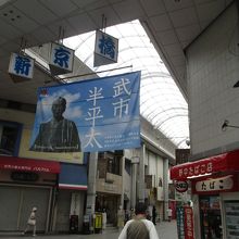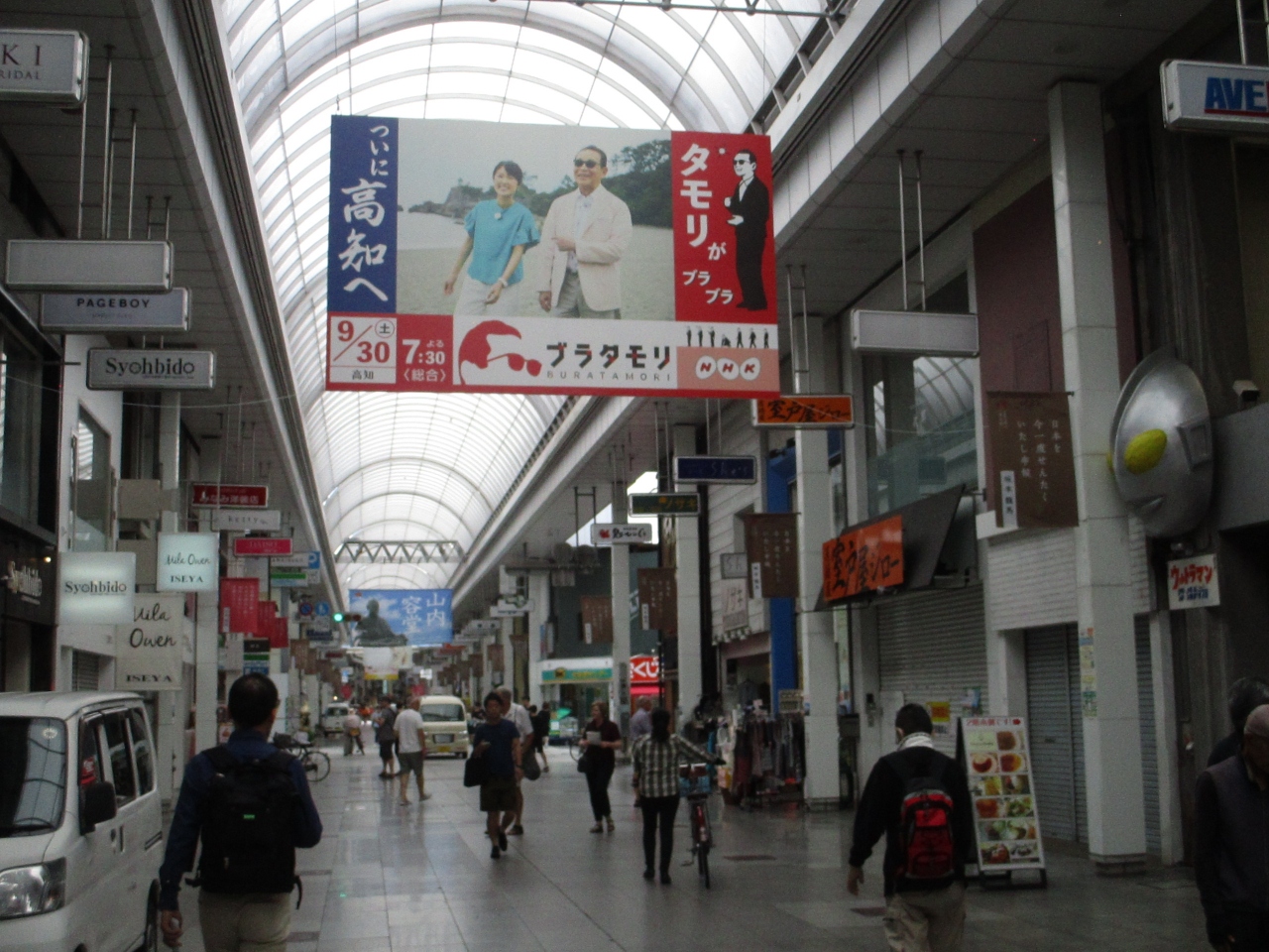 アーケードにはNHKの番組「ブラタモリ」がついに高知へという大きな垂れ幕が途中に掲げられていました。
