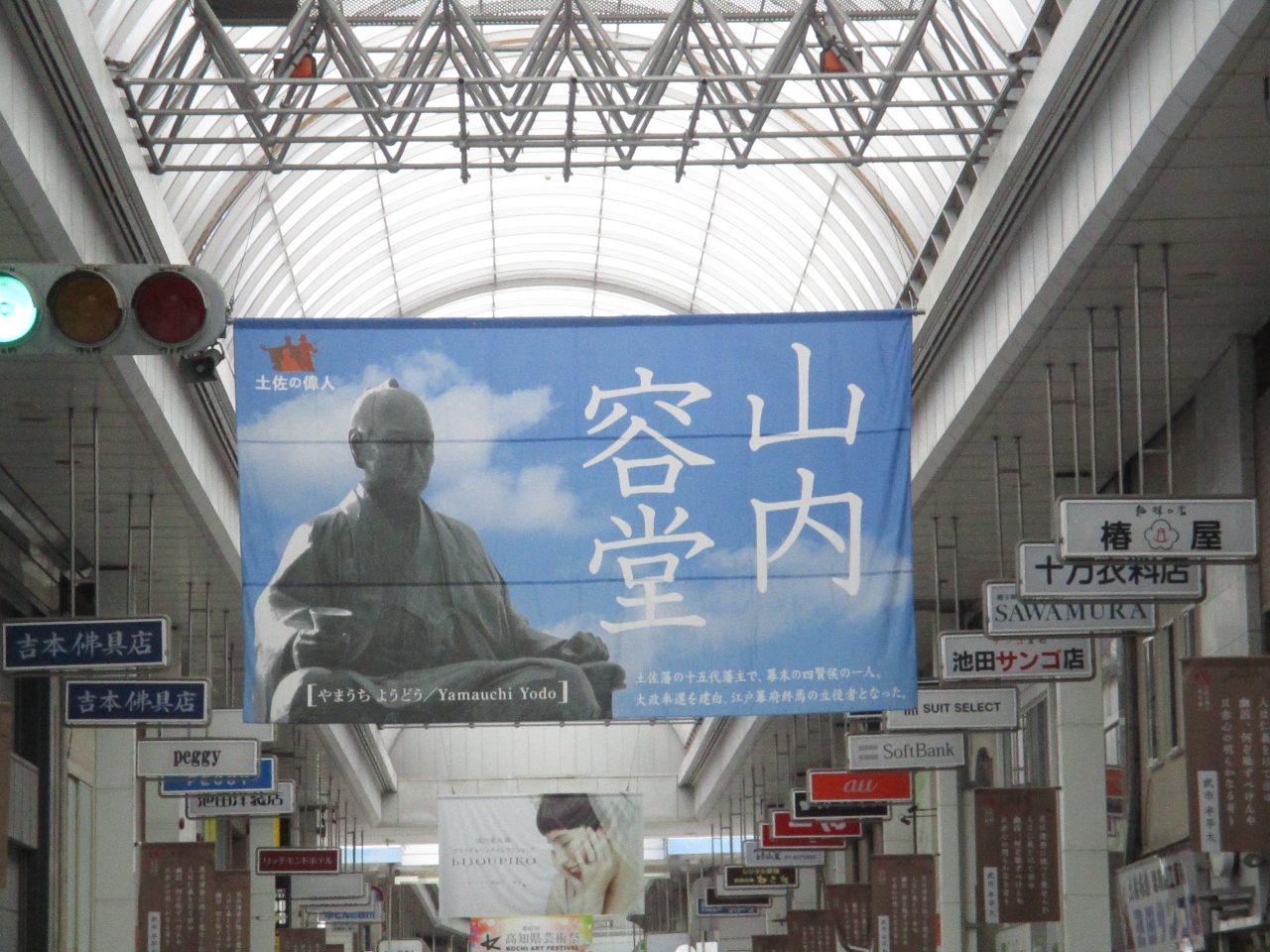 帯屋町一丁目商店街は、高知市帯屋町商店街の中央にある全長約270mのアーケードの高知市を代表する商店街の一つだそうです。