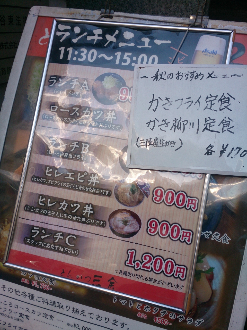 本来はロースカツ定食あたりを責めるのがセオリーなのだろうが、平日の昼間に2000円越えはちょっと痛い。