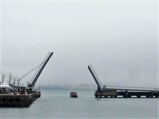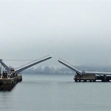 開橋すると、港に停まっていた船が出ていきます。そしてまた、ゆっくりと閉橋していきます。