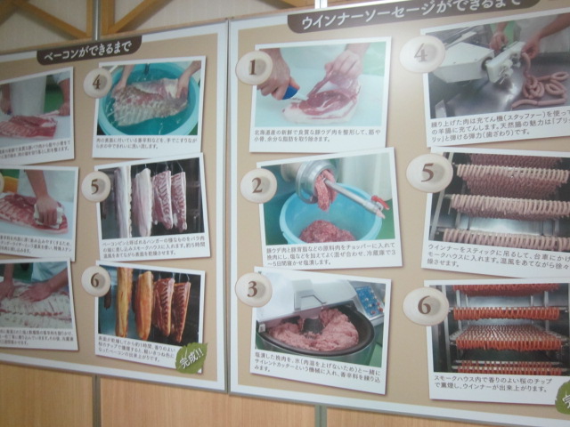 JR函館本線の黒松内駅からは北西方向に約3キロ程ありますが、畑作地帯のど真ん中にある感じの立地なので、遠方からでもお洒落な外観の建物が見えるとここだなと判ります。手作りハムやソーセージが色々と販売されていて、私は閉店間際の時間帯に訪問したところ、半額で販売されている商品も色々とありました。