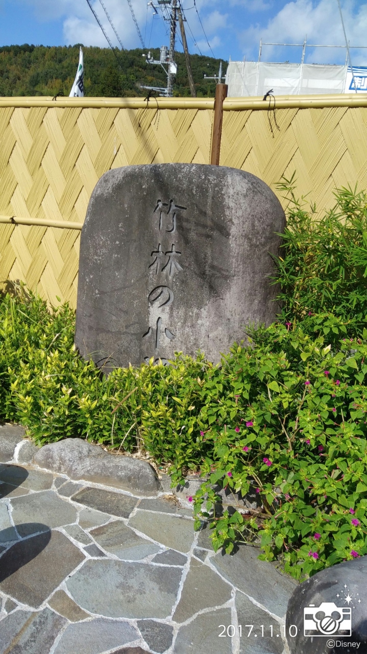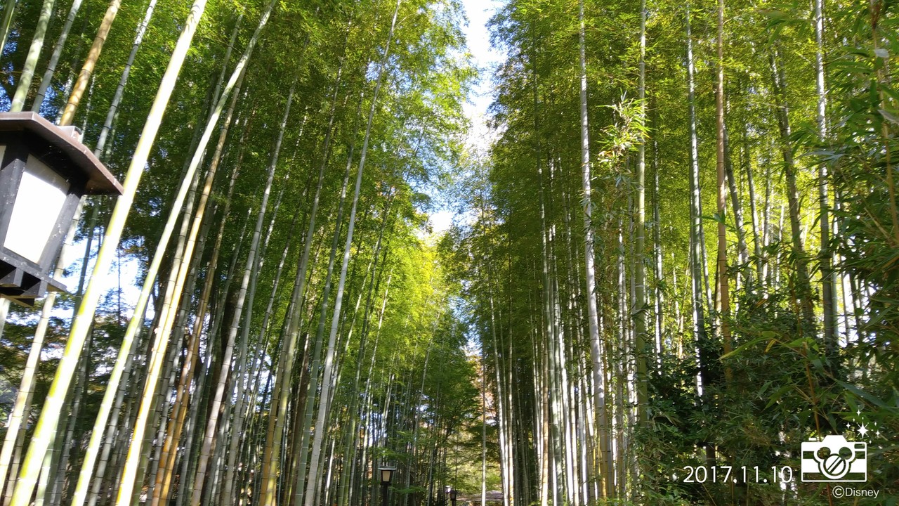 中央にある竹で作った丸い大きな休憩台に腰掛け空いている時は仰向けに寝転び空を見上げるのが私は好きなんですよ。真っ直ぐな竹林の中から青空がぽっかり見えて癒されるんですよね!私だけかもしれませんが…(笑)