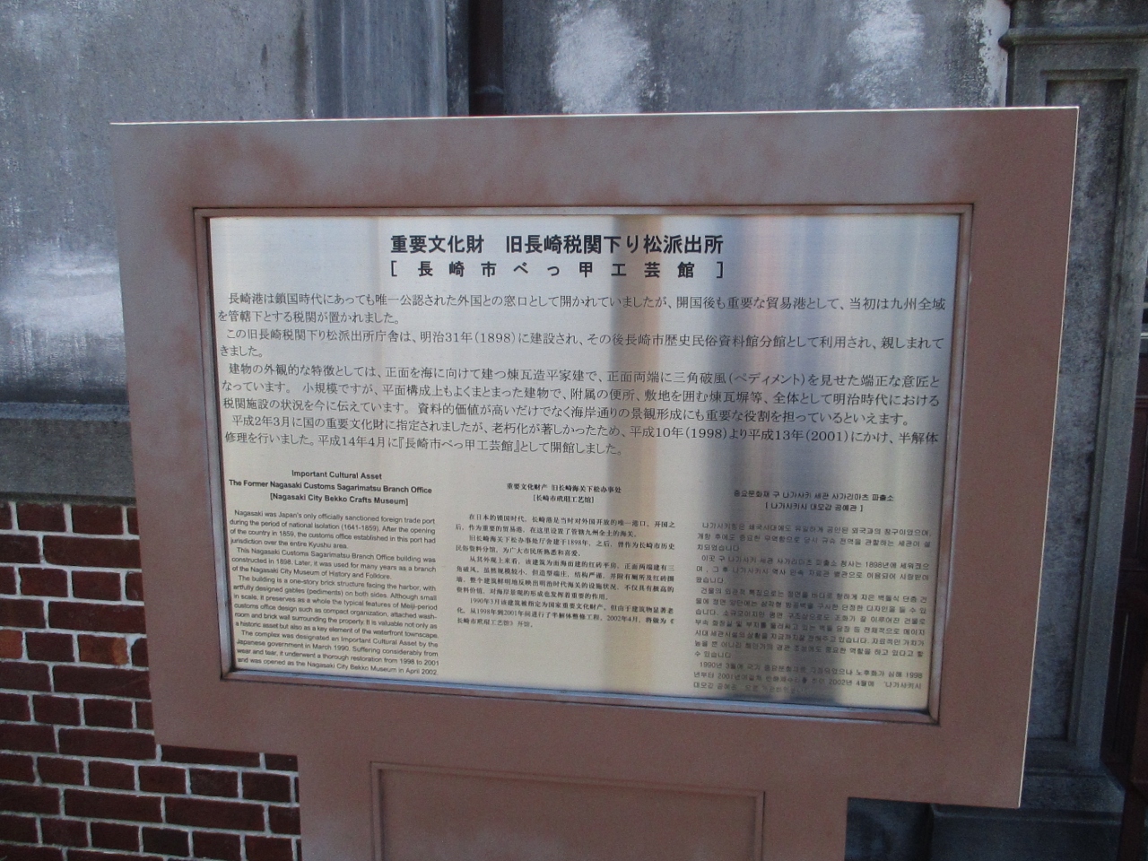 「長崎市べっ甲工芸館」は、国指定重要文化財「旧長崎税関下り松派出所」だった建物を約4年間の保存修理工事を経た博物館で、べっ甲工芸品及び税関資料を展示するために平成14年4月10日にオープンしたそうです。
