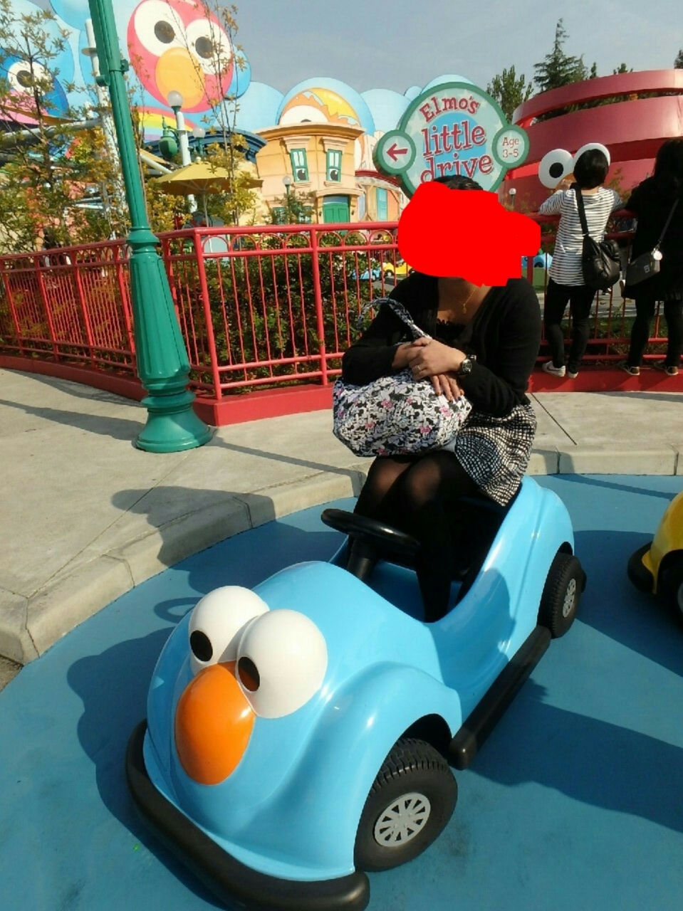 ものすごくかわいいアトラクション!エルモのゴーカートでコースをドライブします。
