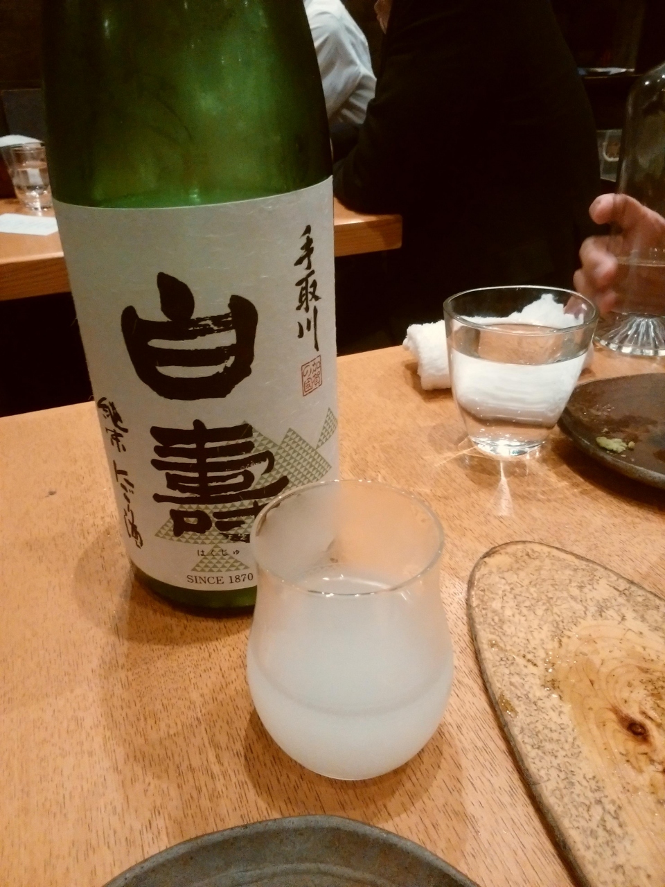 友人に誘われて夜訪問。料理に合わせておすすめの日本酒を出してくれ、最初は辛口の冷酒から徐々に芳醇な冷酒に移り、うす濁り、最後は燗酒で締めて終わったが、結局どれも美味しくて飲みすぎてしまった。