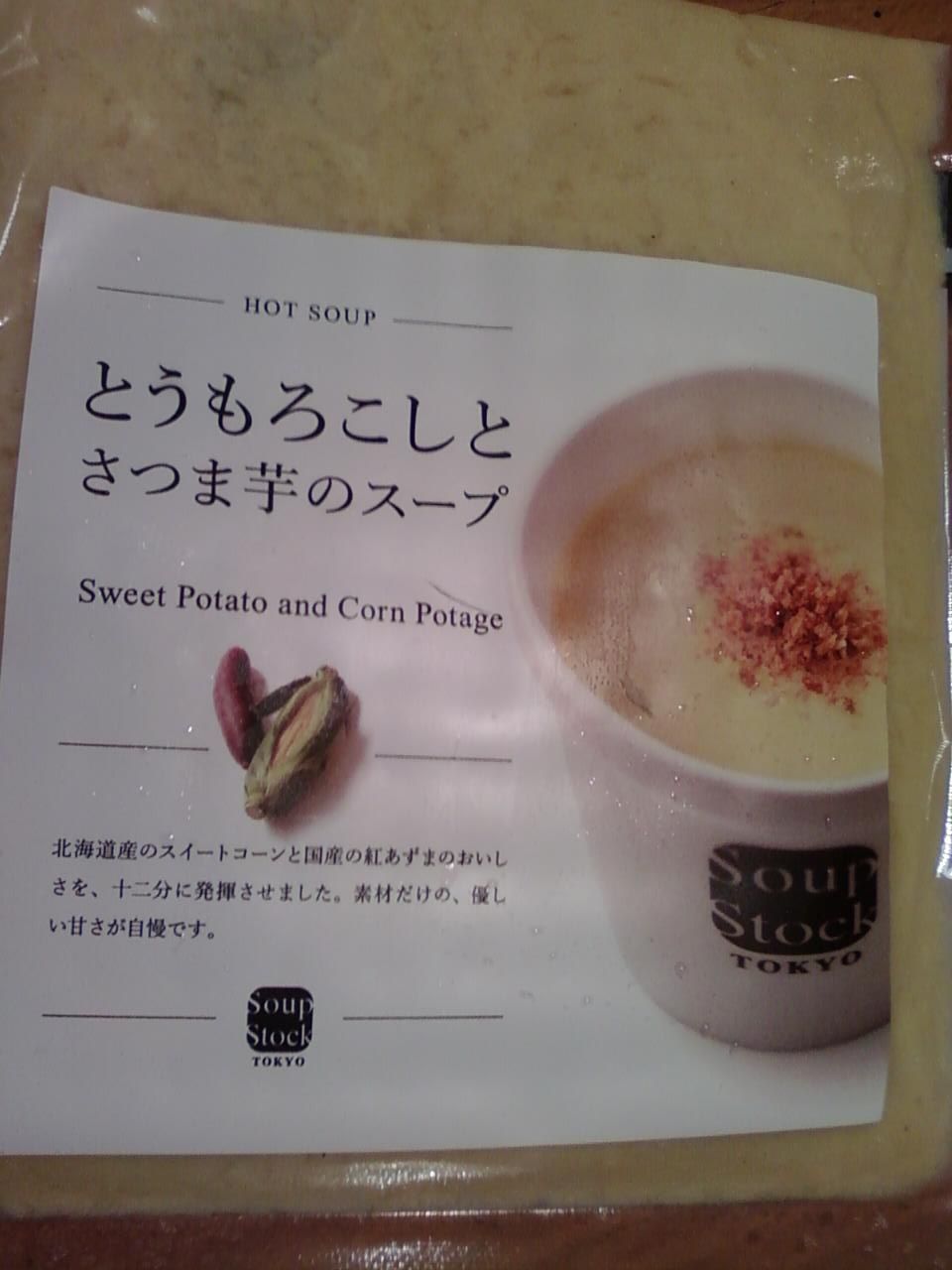 ここのスープストックトーキョーはJR恵比寿駅に連結している、アトレ本館の3階にあります。とても人気のあるスープの専門店で、そのスープの実力はすばらしいもの。35種類のスープやカレーが、カタログには載っていました。お店に常に35種類あるわけではないですが、季節によっても内容は変わりますし、特にこれからの季節にますます需要が高まりますね。北海道産のスイートコーン、国産紅あずまとミックスして、素材だけの甘さが活かされていました。