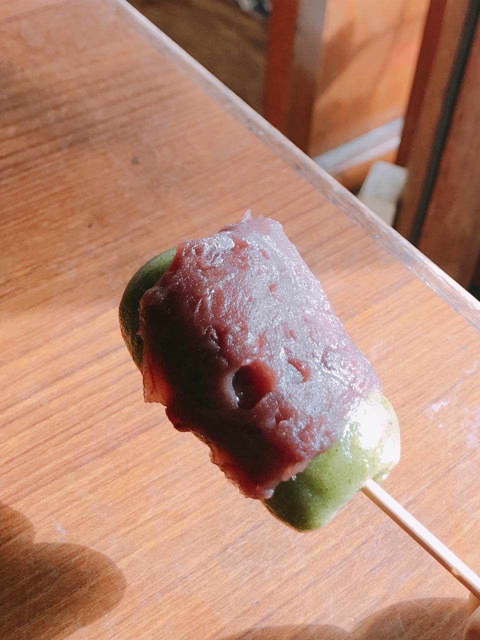 お店の前で行列が出来ていたので並んでみるとそこはお土産用の箱に入ったお団子でしたので、向かいの同店で串で販売されていて早速購入。団子は3個刺さっておりやや大きめでした。柔らかめの団子で甘くあんこもなめらか。あっという間に完食しました。おすすめです。