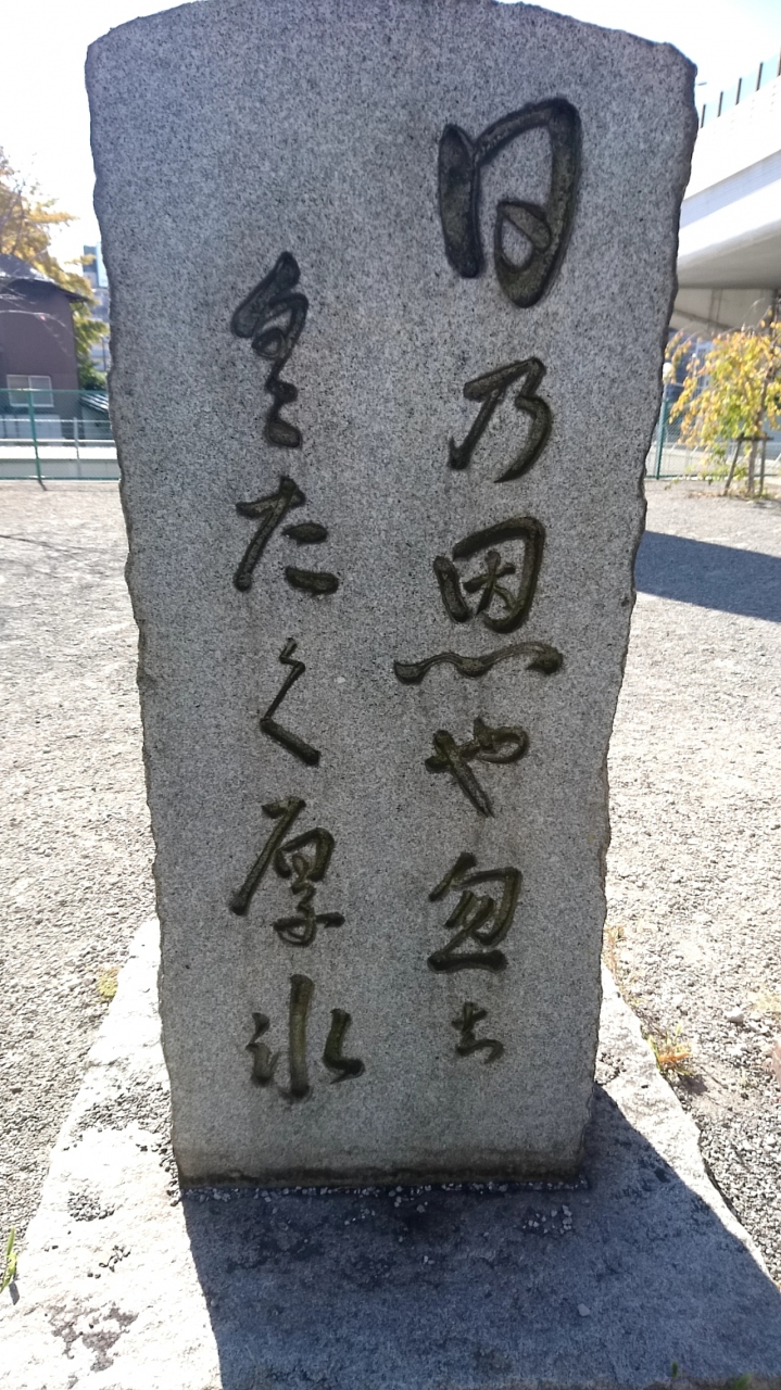 両国橋児童遊園の前に忠臣蔵四十七士の一人で、討ち入りの日を決定する重要な情報を入手したと言われる大高源五の句碑がありました。吉良上野介義央のお茶の師匠である山田宗偏から吉良が在宅していることを教えられたとされています。忠臣蔵が史実であることを改めて感じさせられました。
