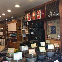 店頭には地元徳島の大谷焼の陶器に豆が入れられ 量り売りをしている。