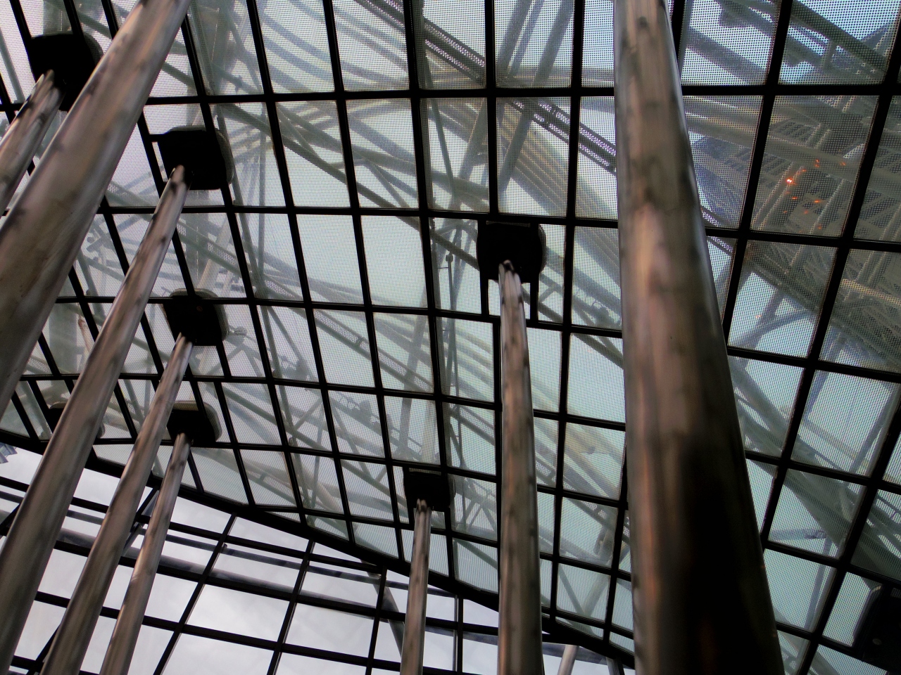 地下に建物が埋まっているため、地上にあるステンレスパイプでできた物体が印象的で、美術館らしい外観だと思います。