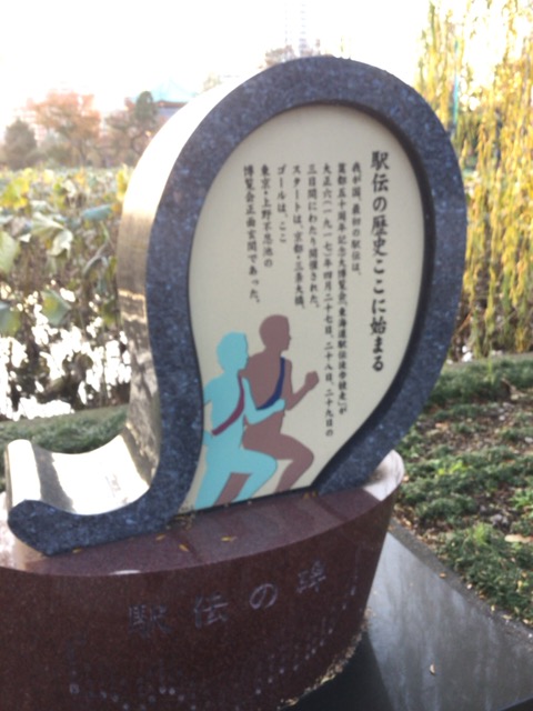 不忍池の弁天堂の周りに多くの石碑があるが、こちらの駅伝の碑は弁天堂へ向かう参道の横にある。お勧めの点は、大正6年に国内で初めて駅伝が開催されたことを記念して建てられたものであること、石碑にはランナーが走る姿をカラーで描いていて分かりやすいこと、大正6年の駅伝開催が契機になり大正9年に箱根駅伝が誕生したこと、大正時代の駅伝の様子を楽しく想像できること、駅から徒歩で行けることである。
