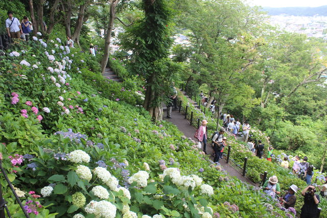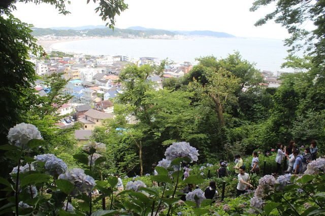 アジサイの花はとても多くてきれいで、また寺から見た由比ヶ浜もよかったです。