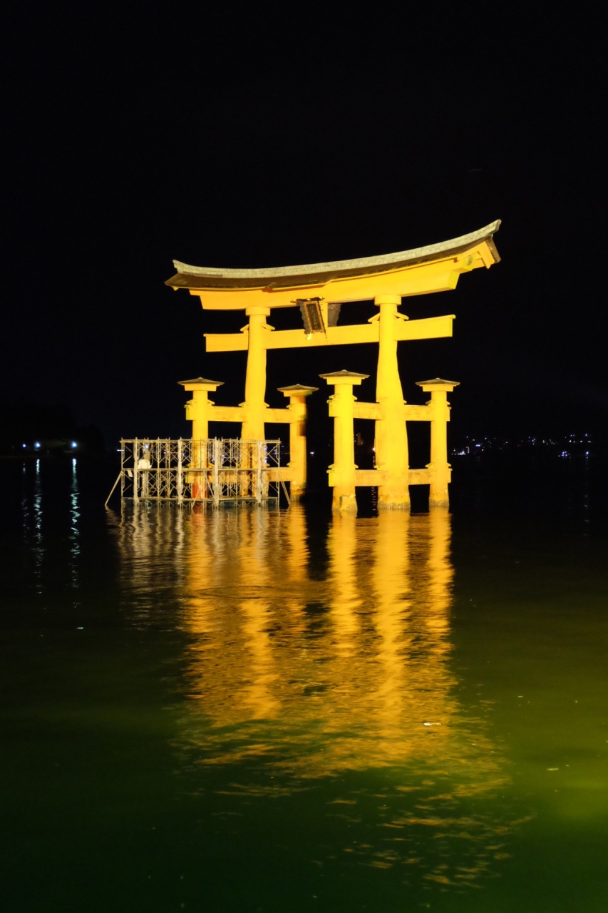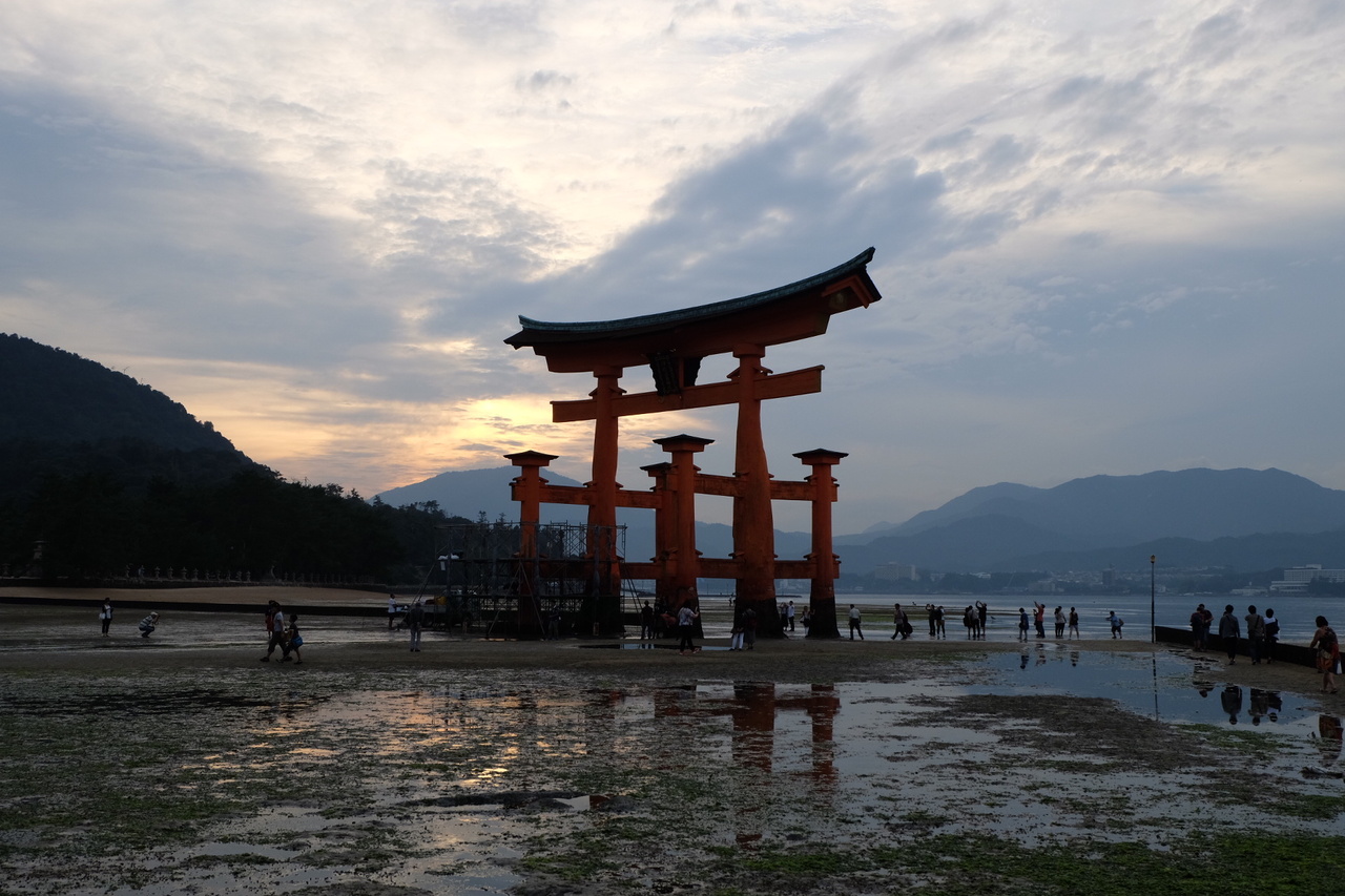 世界遺産にも登録された、言わずと知れた有名な神社です。海中にたつ大鳥居はやはりとても美しくて絵になる光景です。10月は17時前後が干潮の時間帯で、実際に大鳥居のところまで歩いていくことができました。近くでみるのも迫力がありますし、建物の中に入り遠くから眺めるのもいいです。宮島内で宿泊したので、夜は大鳥居がライトアップされて、また雰囲気が違ってきれいでした。