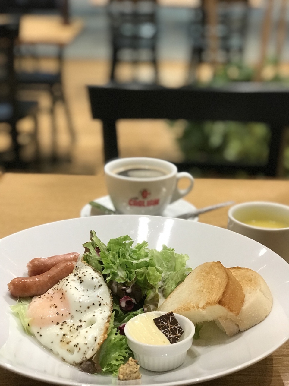 博多マルイにあり、朝早くから営業しています。モーニングはシンプルなトーストセットやパンケーキ、プレートなどがあります。広いスペースで、ゆっくりできます。コーヒーも美味しいので、次回はチョコレートを頂きたいと思います。