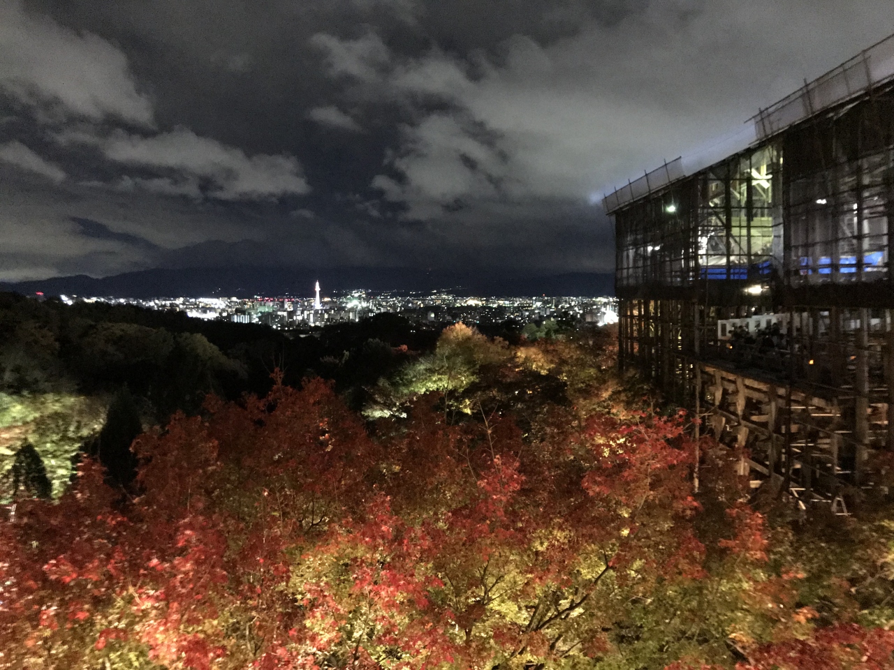 清水寺から見える京都市街のパノラマ感も見応えあり、ライトに照らされた紅葉も素敵でした。